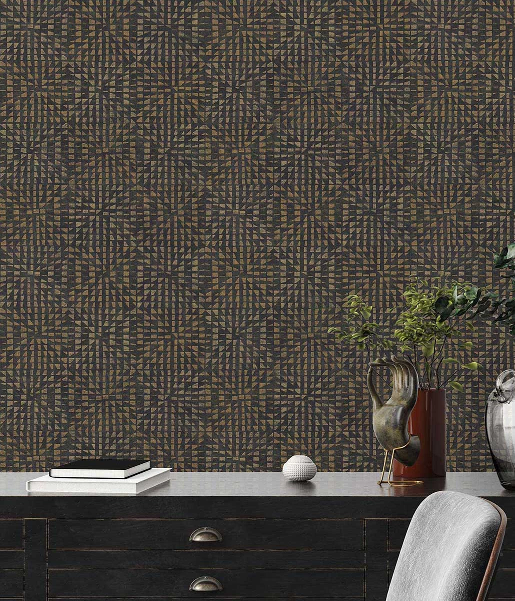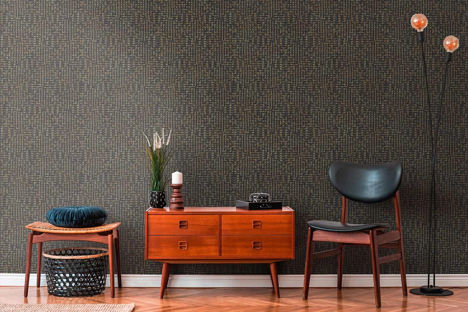 Vliestapete aus der Kollektion Geo-Effect von AS Creation in Bronze Schwarz Metallic mit Struktur Geometrisch