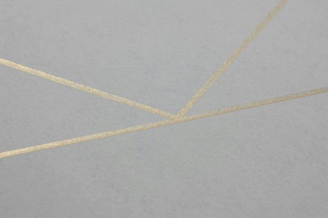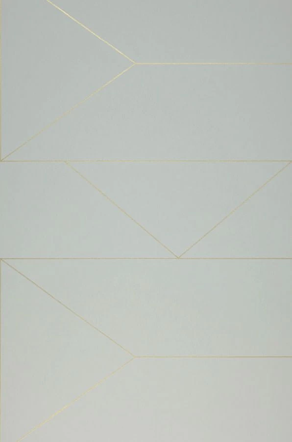 Feine, golden schimmernde Linien – mal parallel, mal aufeinander zulaufend und sich diagonal kreuzend – formieren sich auf dieser eleganten Vliestapete von Ferm Living zu geometrischen Figuren wie Dreiecken und Trapezen. Ihre Wand gewinnt fast unmerklich eine ordnende Struktur. Das helle Blasspastellgrün des Grunds in Verbindung mit dem Gold der Linien lässt dabei jeden Lichtstrahl seine ganze erhellende Wirkung entfalten.
