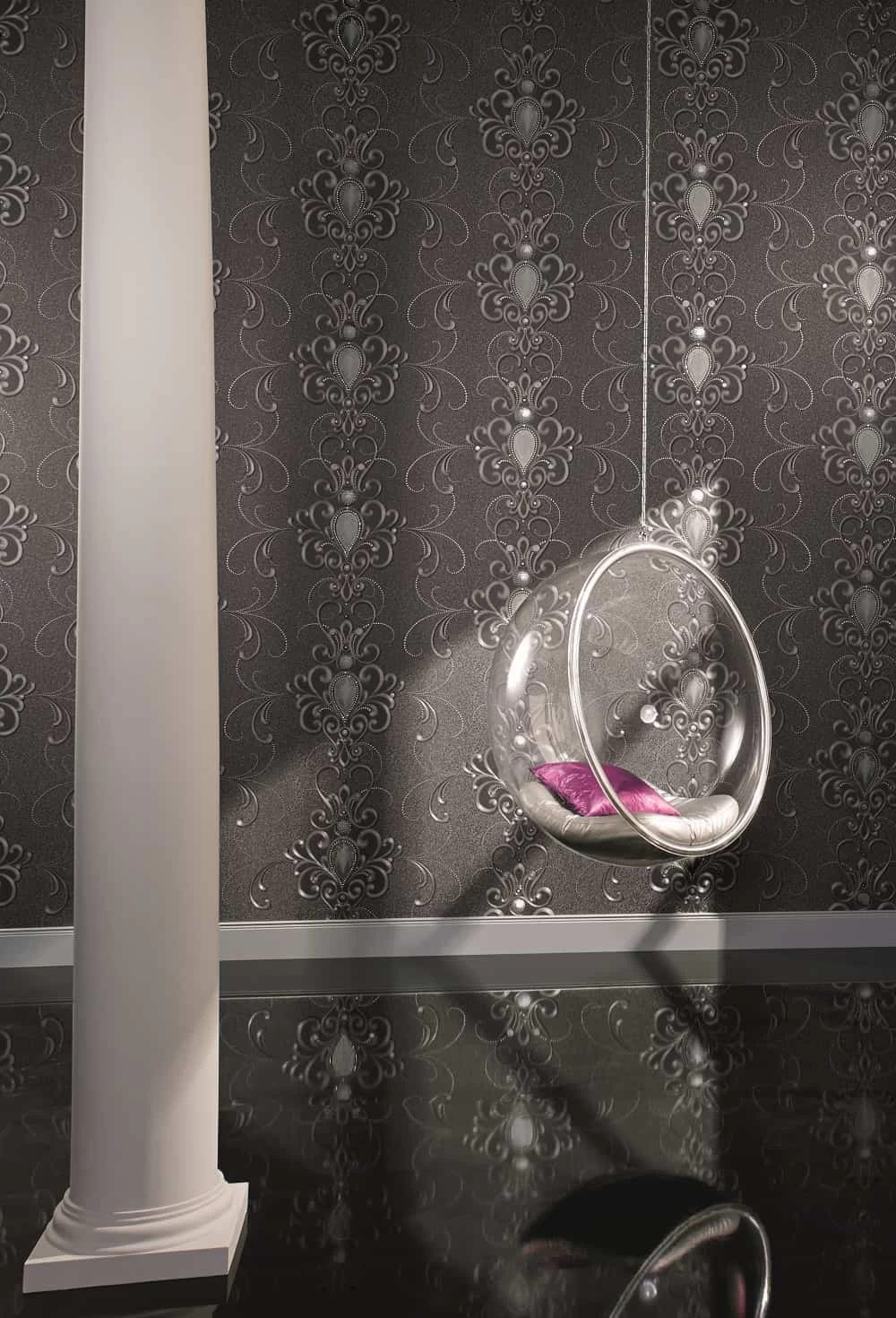 Glööckler Tapete Vlies Ornament Diamant anthrazit Glanz 54853