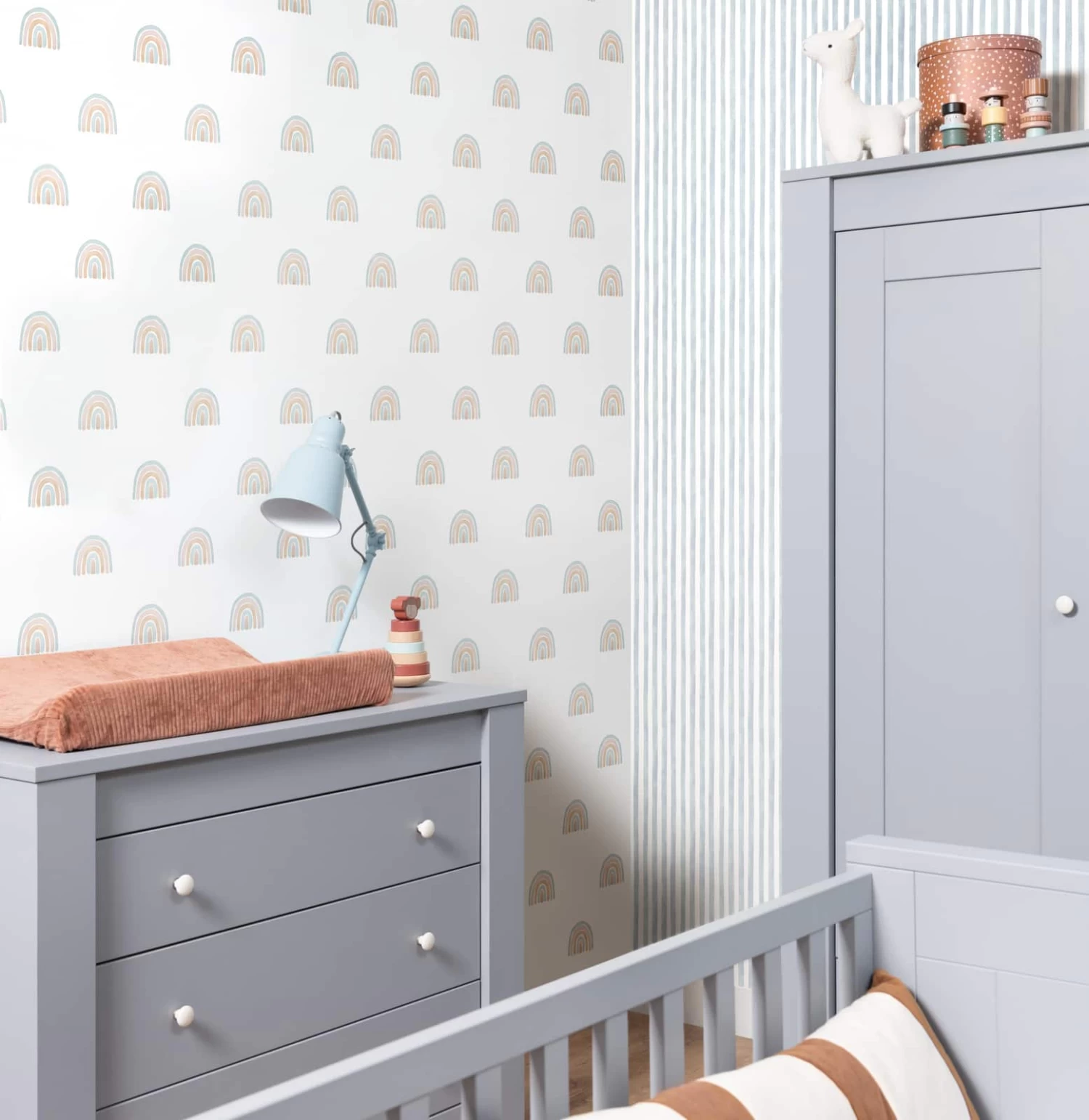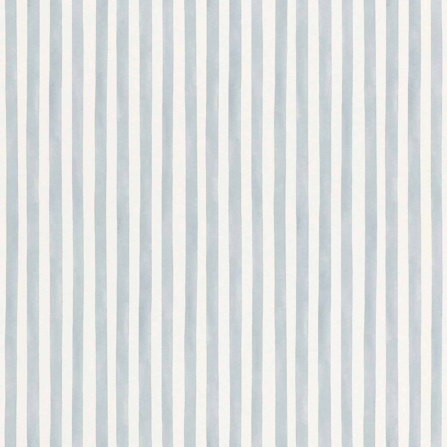 Auf Streife: Mit hellblauen Wasserfarben kann es direkt losgehen! Dabei muss das Muster nicht mit Lineal gezeichnet sein, vielmehr erhält es durch einen ruhigen Pinselstrich einen schönen, individuellen Charakter. Der Vorteil am Streifenlook: er ist wunderbar zeitlos und darf auch nach Jahren im Kinderzimmer mitspielen.