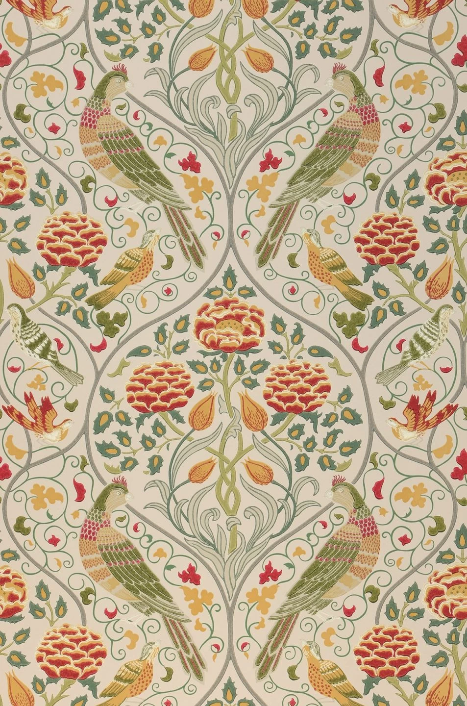 Dekorative Jugendstil-Klassik mit tropischer Fruchtigkeit versprüht Designtapete Adina in der Farbvariante mit Hellelfenbein, Rot, Ockergelb und natürlichen Grüntönen. Die zauberhaften Musterelemente, die immer wieder neue Überraschungen für das Auge bieten, wollen bewusst im Mittelpunkt des Geschehens stehen.