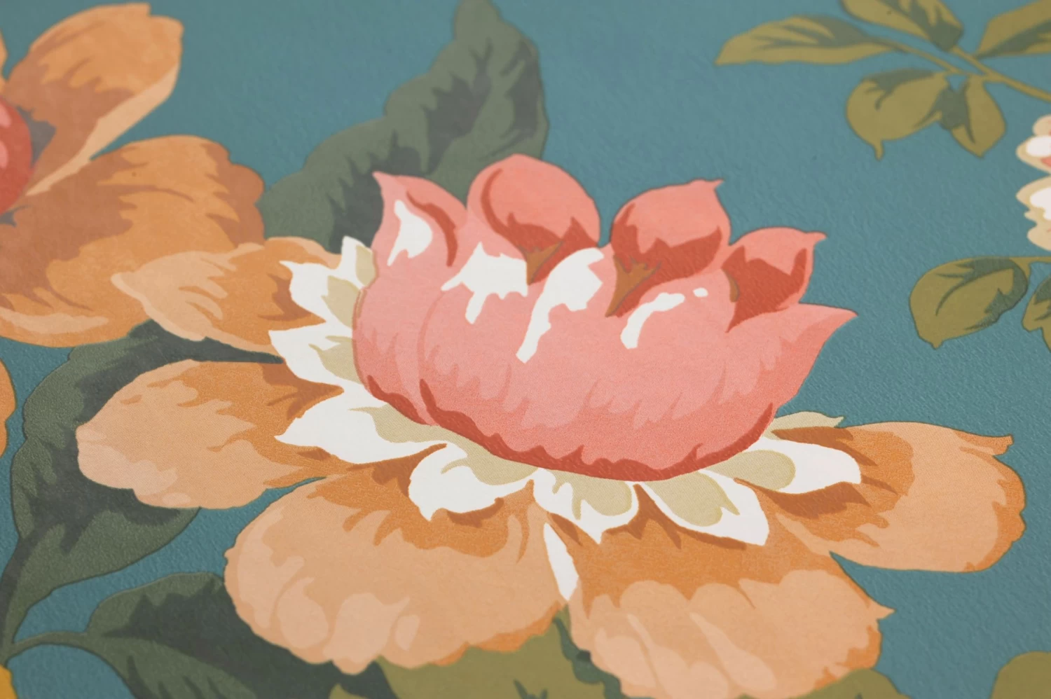 Reich geschmückt mit Blüten, deren Honiggelb, Ocker und Rosa sich kontrastreich vom intensiven Türkisblau des Untergrunds abhebt, bringt Amalfi Ihnen den niemals endenden Sommer ins Haus. Wirkungsvolle Farbschattierungen und cremefarbene Akzente betonen die Gestalt der vollen, leuchtenden Blüten, die an kräftigen Zweigen wachsen. Dazwischen sorgen frische, grüne Blätter für Abwechslung.