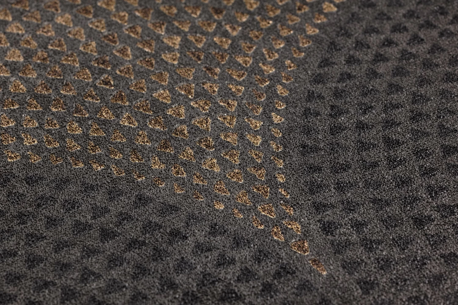 Wie in einem kostbaren antiken Mosaik setzen sich die kleinen mattgoldenen und schwarzgrauen Elemente des Musters zu fächerförmigen Ornamenten im Stil des Art Deco zusammen. Ihre Wände erhalten einen luxuriösen Touch in edlen Farben. Die fein strukturierte Vinyloberfläche der Vliestapete ist hoch waschbeständig, so dass Sie auch Ihr Bad problemlos in den Glamour des Art Deco kleiden können.