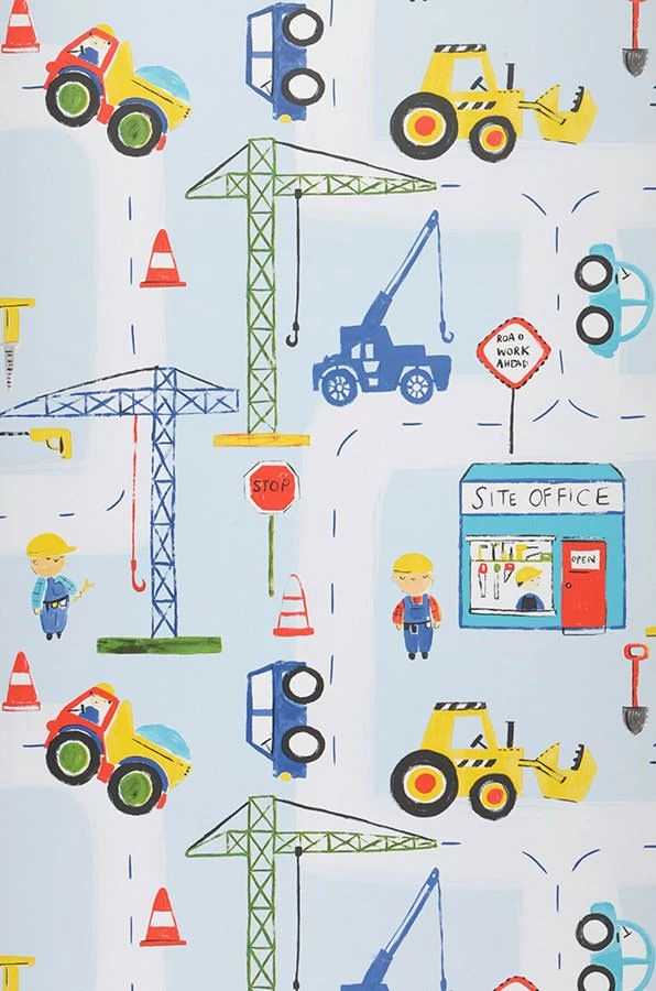 Kann Ihr Kind auch an keiner Baustelle vorbeigehen, ohne eine Weile stehenzubleiben und den Arbeiten zuzusehen? Bagger und Kräne sind das Größte? Dann verwandeln Sie doch das Kinderzimmer mit dieser Tapete in ein Paradies! Farbenfroh und kindgerecht gezeichnet, tut sich die Welt der Bauarbeiter auf – komplett mit Baggern, Kippern, Kränen, Autos und sogar einem kleinen Büro. Schilder und freundliche Bauarbeiter dürfen natürlich auch nicht fehlen!