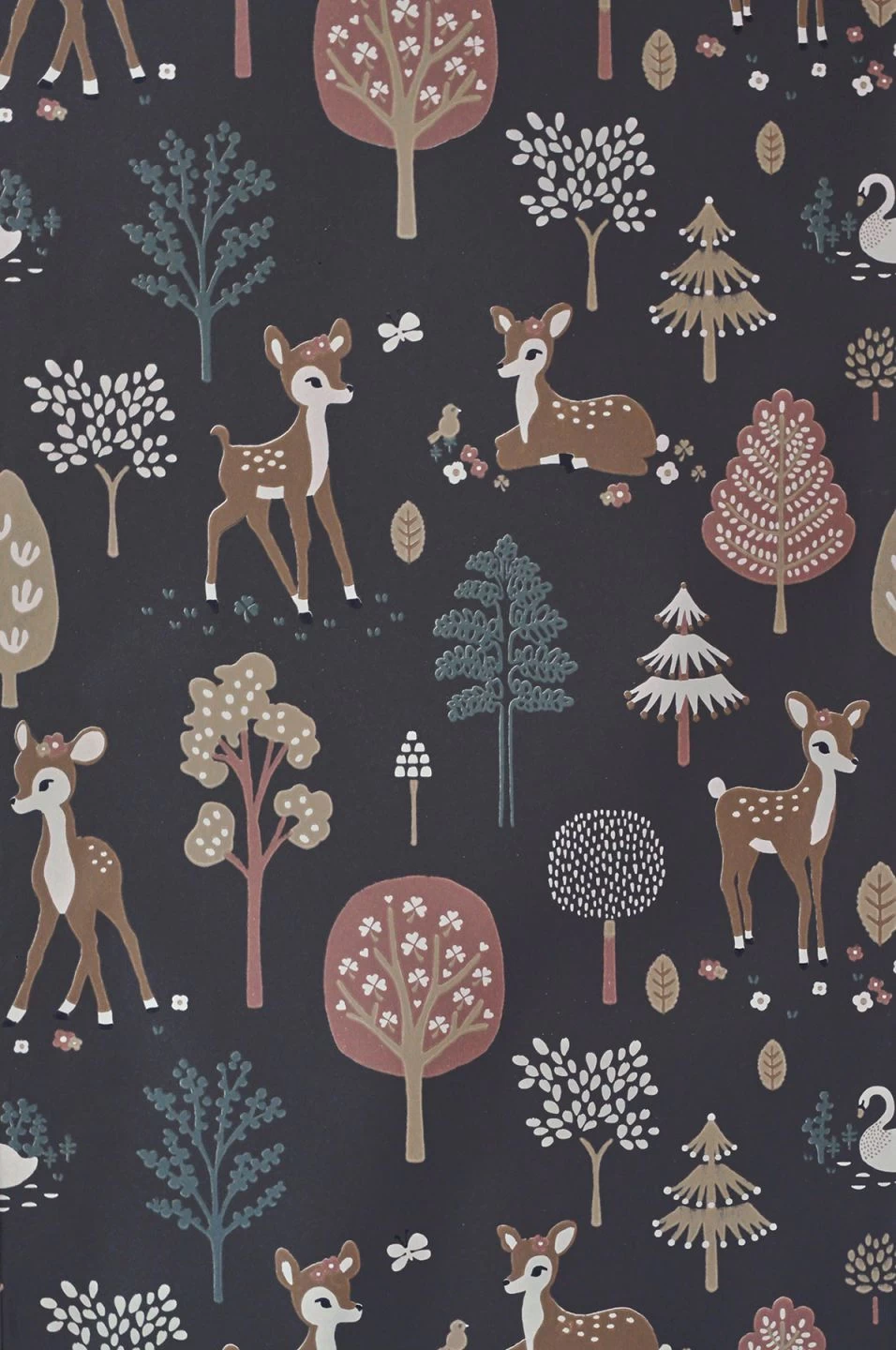 Beim Anblick dieser idyllischen Waldszenerie kommen nicht nur Kinder ins Schwärmen. Der märchenhafte Mix aus stilisierten Laub- und Nadelbäumen, stolzen Schwänen sowie putzigen Rehkitzen erhält durch tiefgründiges Umbragrau eine spektakuläre Ausstrahlung. Die abwaschbare Vliestapete aus dem Hause Majvillan beruhigt auf wundervolle Art und Weise.