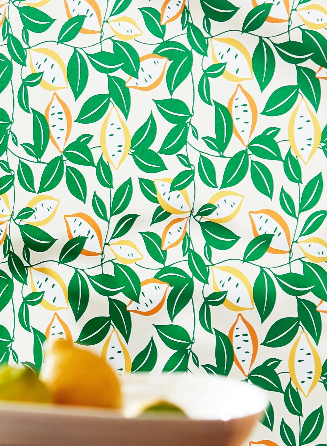 Die stilisierten Blätter in kräftigem Grün scheinen fröhlich zu tanzen. Zwischen ihnen blitzen reife Früchte in leuchtendem Orange und Ginstergelb hervor und beleben Ihre Wände mit der guten Laune, die der Sommer mit sich bringt. Ob Sie Ihr Wohnzimmer, Ihr Esszimmer oder Ihre Küche damit schmücken, mit den leuchtenden Farben von Vliestapete Hegemone auf dem cremefarbenen Grund sitzen Sie wie in einer üppig bewachsenen Pergola.