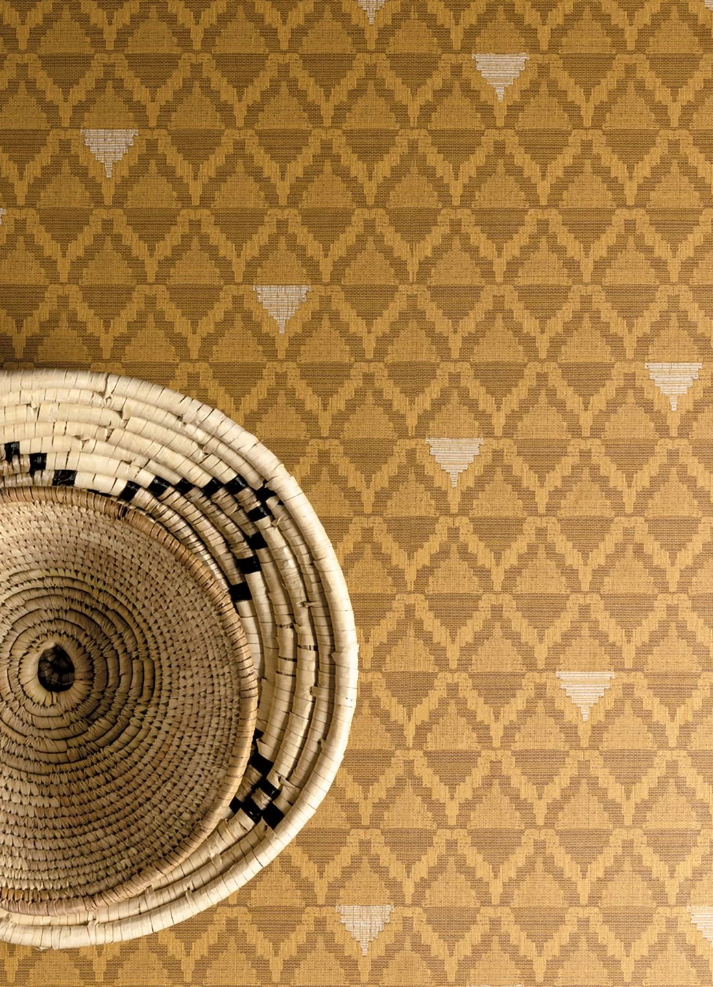Feine Schraffuren in hellen Erdfarben – Sandgelb, Grauweiß und als Kontrast ein warmer Braunton – finden sich zu einem orientalisch anmutenden Muster aus Rauten und Zickzack-Streifen zusammen. Die Tapete hat durch die Schraffuren den Charakter eines Gewebes und verleiht Ihrem Raum eine warme, gastfreundliche Atmosphäre. Creme- und Brauntöne ergänzen das Gesamtbild perfekt und unterstreichen die exotische Seite der Tapete.