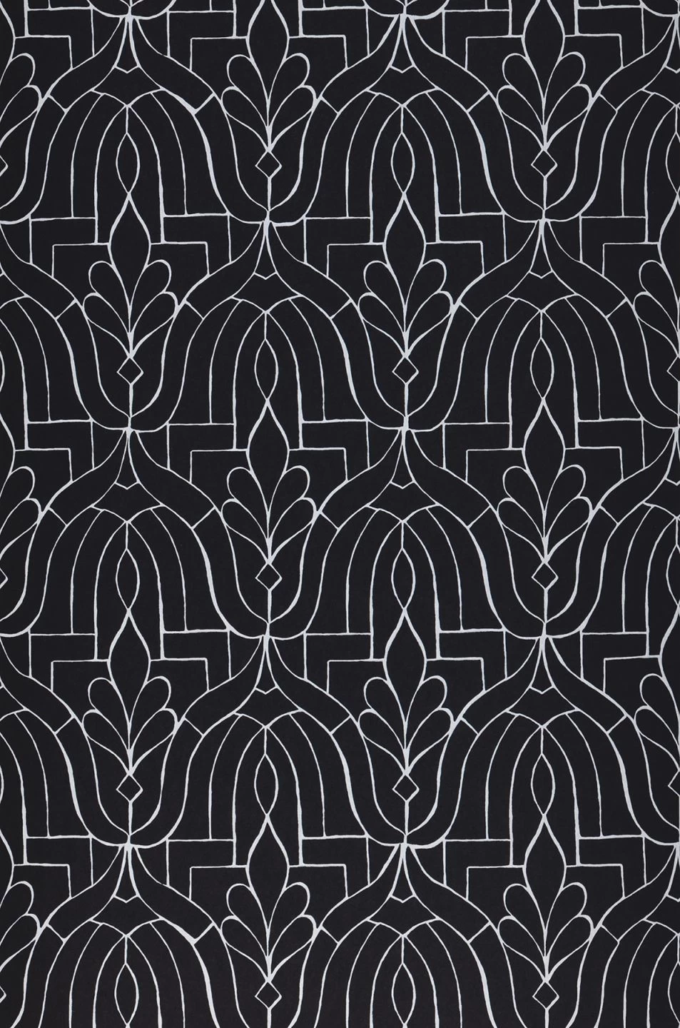 Nur angedeutet durch fühlbare weiße Linien auf dem schwarzen Untergrund dieser Vliestapete, entstehen orientalische Ornamente. Der Verlauf der Linien, ob parallel oder aufeinander zu, in geschwungenen Bögen oder als gerade Strecken, scheint die Kuppeln märchenhafter Gebäude, stilisierte Bäume oder Fächer aus Pfauenfedern zu bilden. Durch den unterschiedlich starken Farbauftrag der leicht erhabenen weißen Musterfarbe wirkt die Tapete wie ein kostbares handgearbeitetes Unikat.