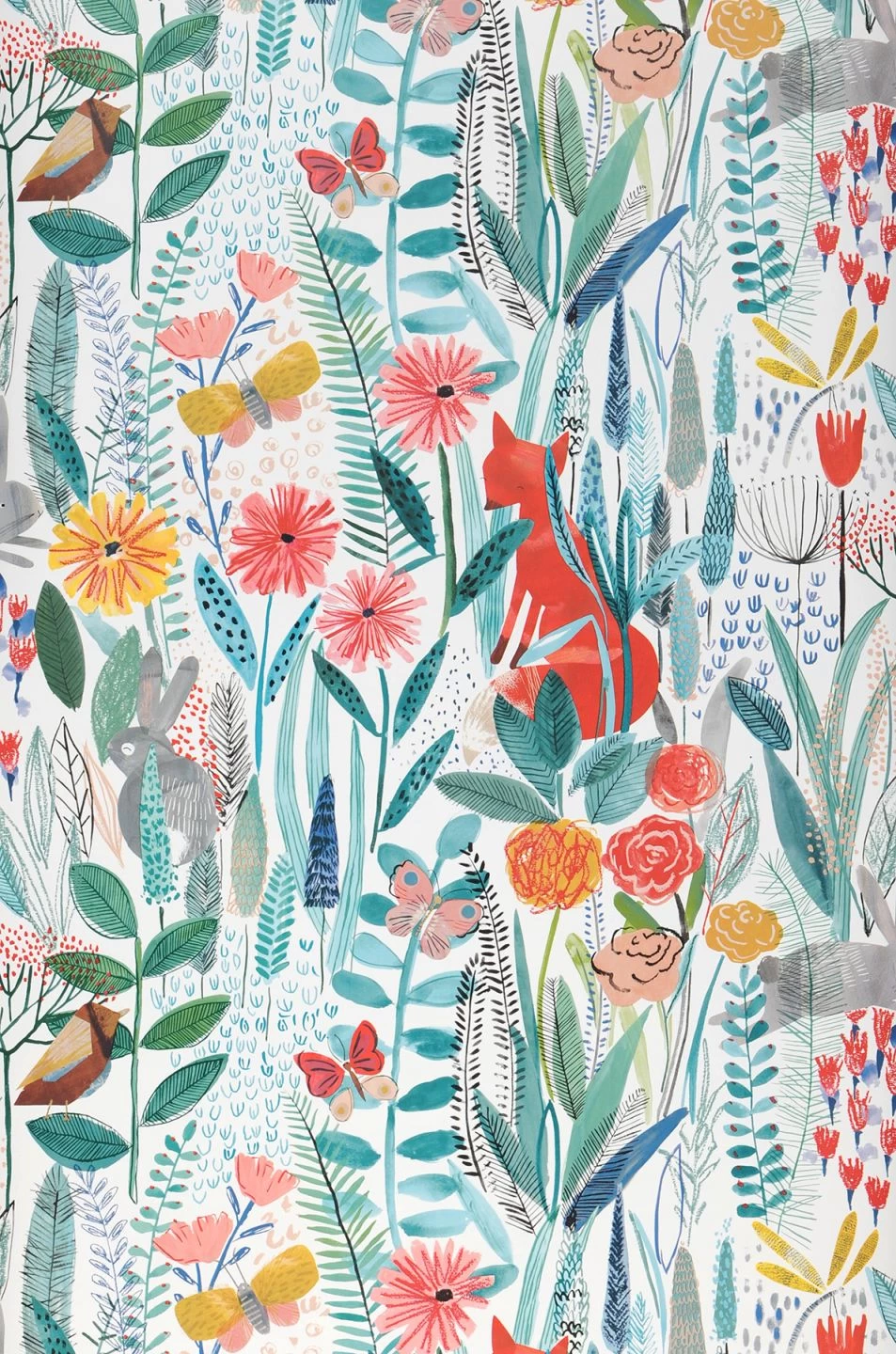 Auf dieser Vliestapete fürs Kinderzimmer gibt es viel zu entdecken: eine phantasievolle Blumenwiese wie mit Farben aus dem Tuschkasten an die Wände gemalt. Zwischen den Blüten in leuchtenden Rot- und Gelbtönen verbergen sich Füchse, Hasen, Vögel und bunte Schmetterlinge. So wird es im Kinderzimmer ganz bestimmt nicht langweilig!