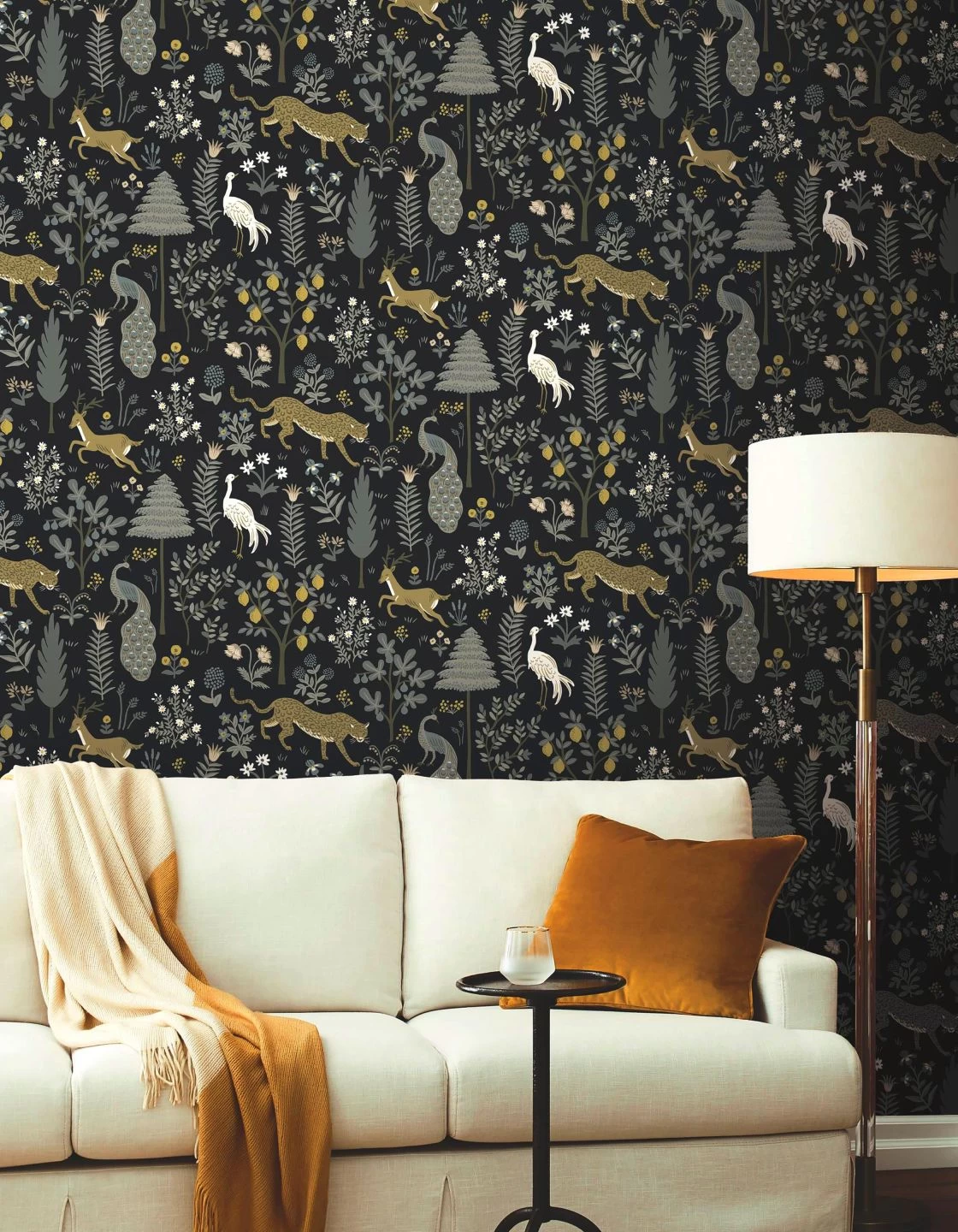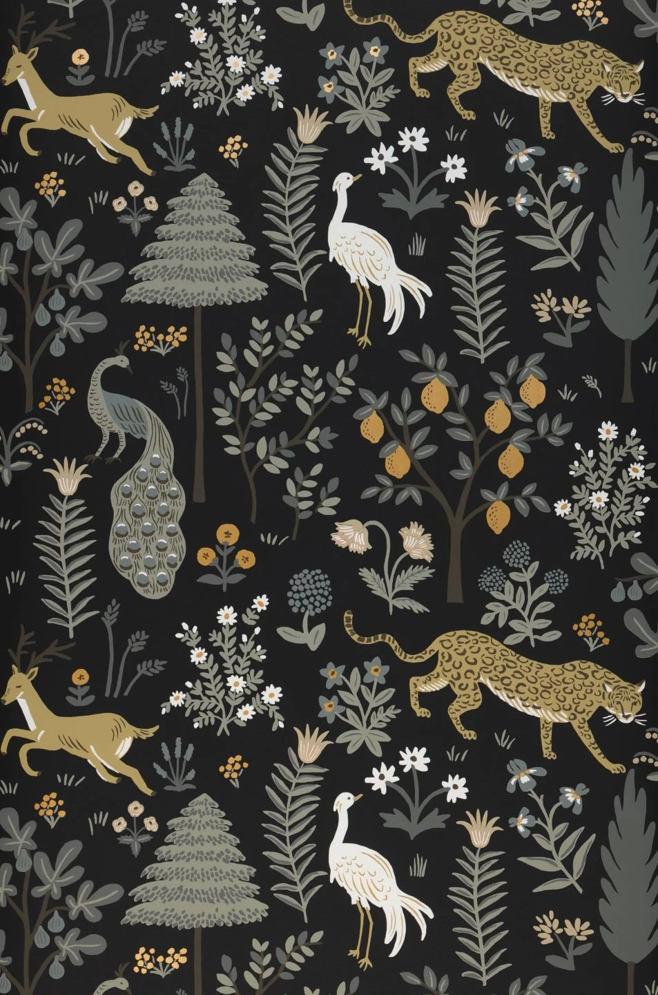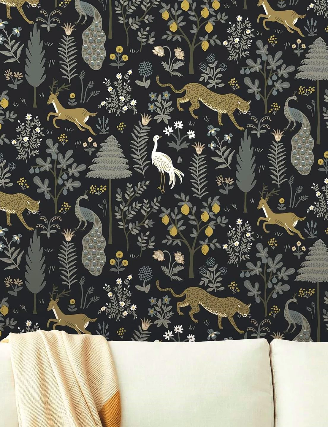 Eine angedeutete Landschaft voller Tiere, Blumen und Bäume, die durch die gedeckten Grautöne, ergänzt um Perlgold und Weiß, sehr geheimnisvoll wirkt. Gleichzeitig entfalten die Farben miteinander eine phantastische Ästhetik, die der Designerfirma Rifle Paper alle Ehre macht. Kombinieren Sie helle Möbel als Kontrast, oder unterstreichen Sie die Welt von Vliestapete Menagerie durch graue oder schwarze Einrichtungselemente.