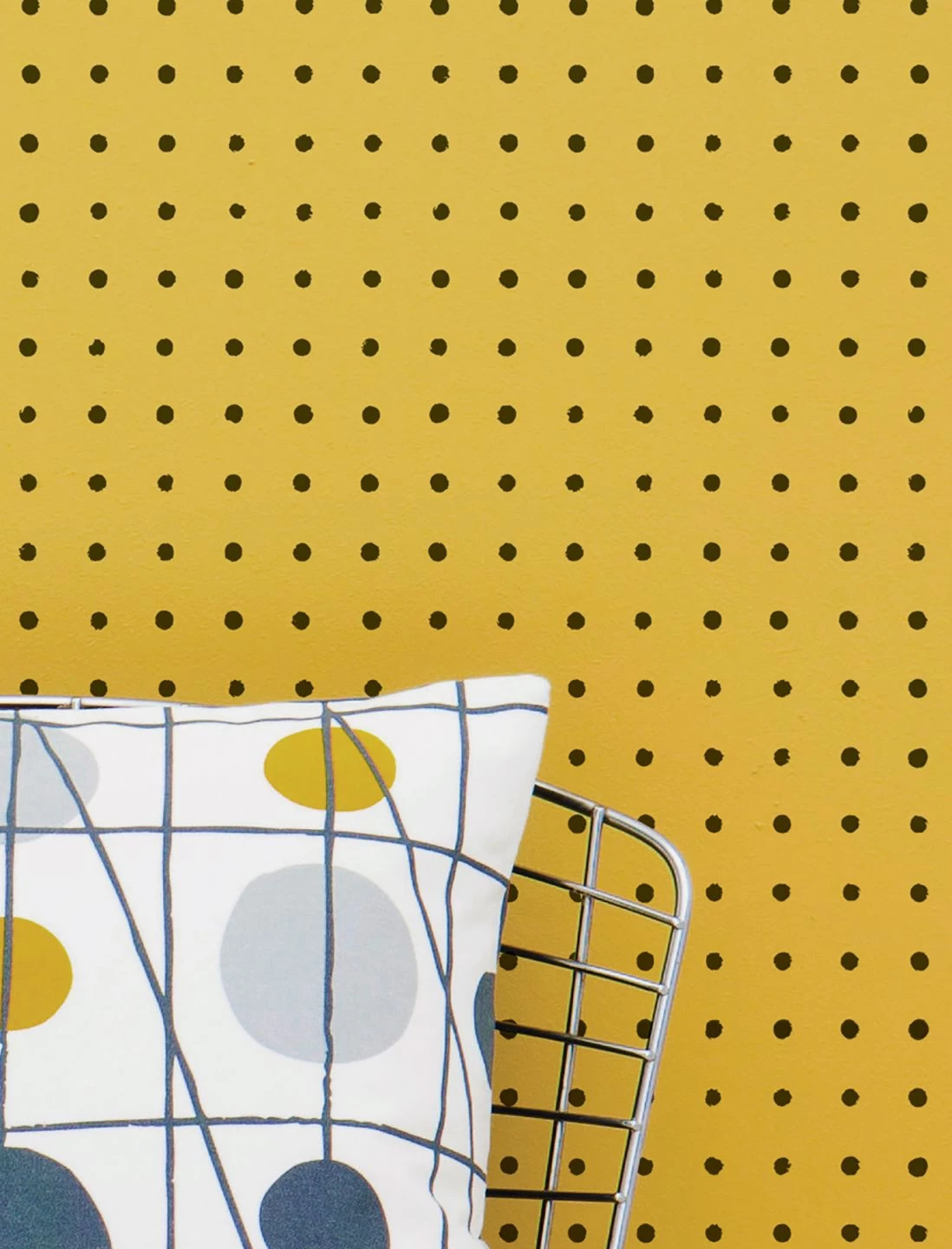Sonniges Goldgelb bietet den schwarzen Punkten einen fröhlichen Grund und taucht den Raum in Lebendigkeit. So kommt auch die getupfte Unregelmäßigkeit der Polka Dots fantastisch zur Geltung, die der geometrischen Designtapete einen hypnotisierenden Effekt verleiht. Goldrichtig für frische Retrolooks mit warmem Holz und Designklassikern sowie moderne Wohnstile.