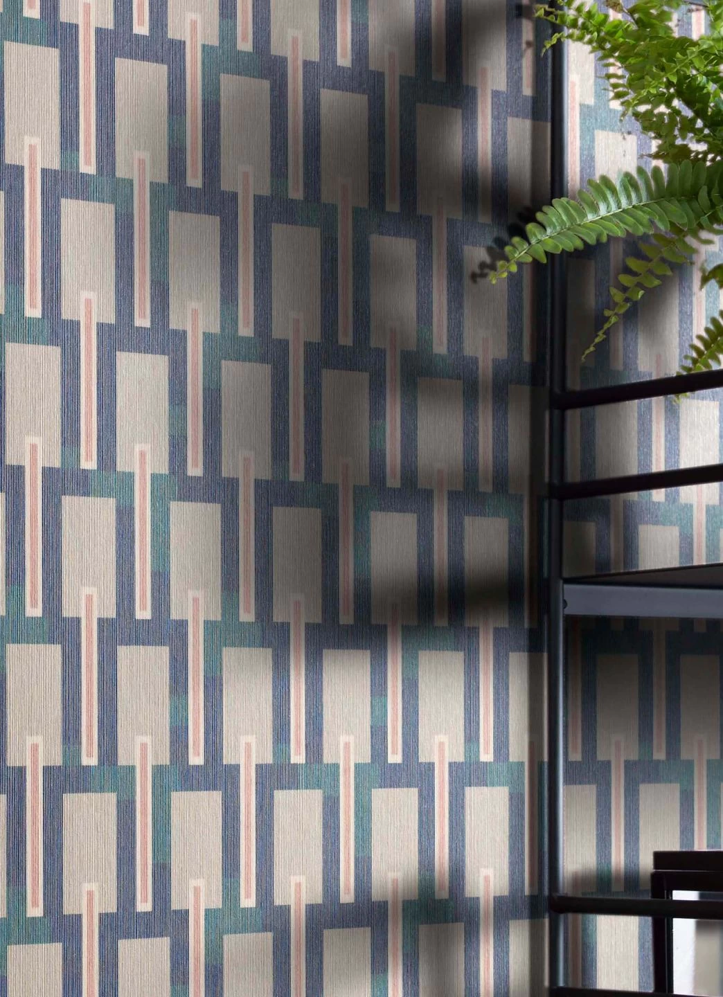 Eine Textiltapete voller Charakter und Ausdruck ist Nebulo mit ihrem graphischen Muster und den echten Kettfäden, die auf den Untergrund kaschiert wurden. Ein kantiges, geradliniges Muster in kräftigem Stahlblau und Kieferngrün sowie hellem Rosa auf cremefarbenem Grund beherrscht das Design. Echte Kettfäden in leicht schimmerndem Weiß geben dieser Vliestapete eine reizvolle Haptik und das gewisse Etwas, das über das Alltägliche hinausgeht.