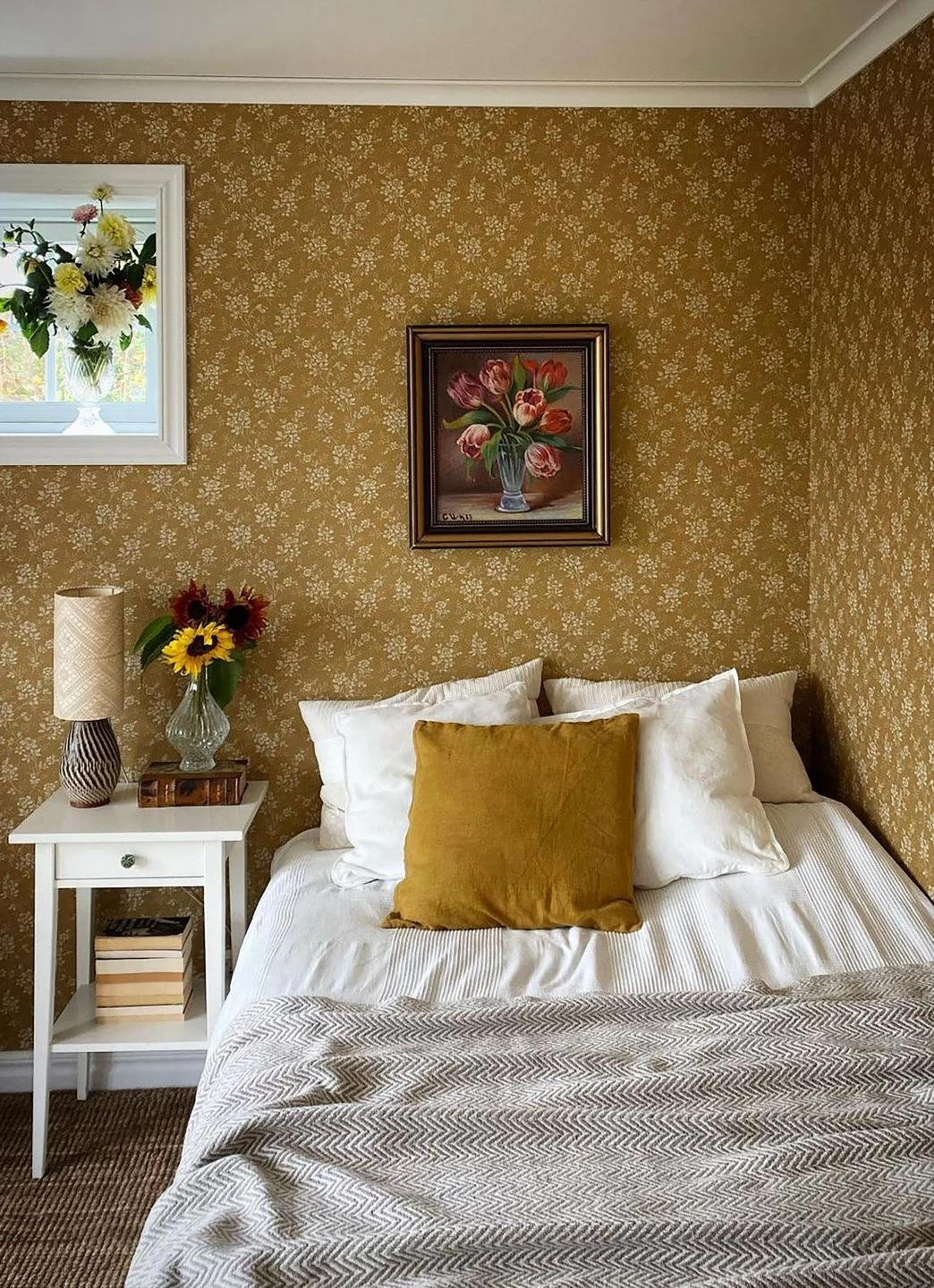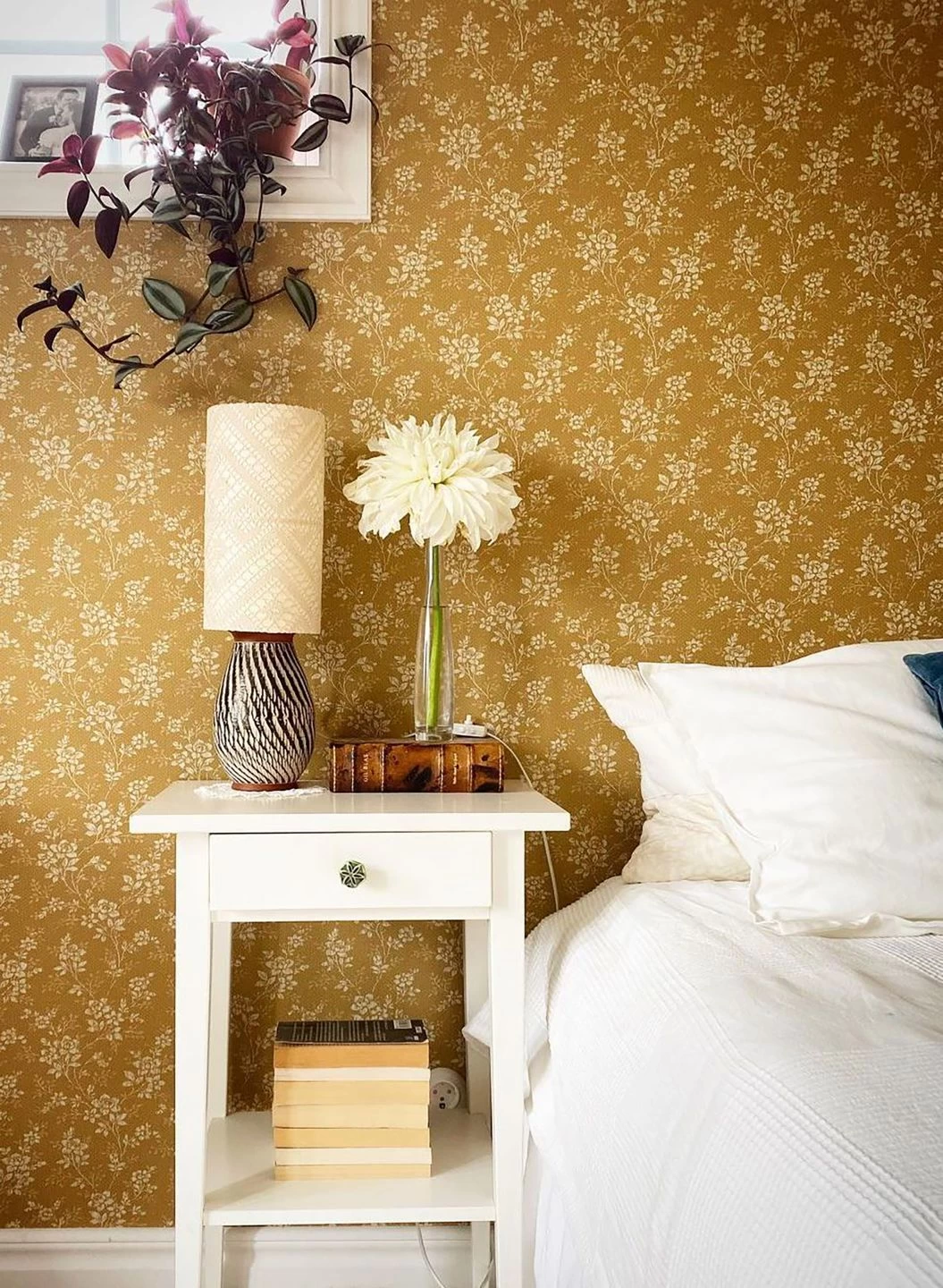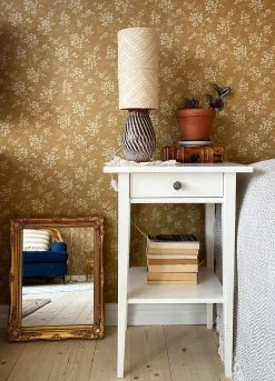 Perfekt zum Landhaus-Stil, aber auch zum skandinavischen Stil oder Shabby Chic passt die Vliestapete Patricia mit ihrem dezenten, freundlichen Blumenmuster. Mit ihrem raffinierten Farbauftrag auf dem ockerfarbenen Grund lassen die cremeweißen Blüten und Blattranken an Holzschnitt- oder Stempeltechnik denken. Zusammen mit den cremeweißen Punkten, die den Grund lebendig machen, strahlen sie gelassene Gemütlichkeit und Gastfreundschaft aus.