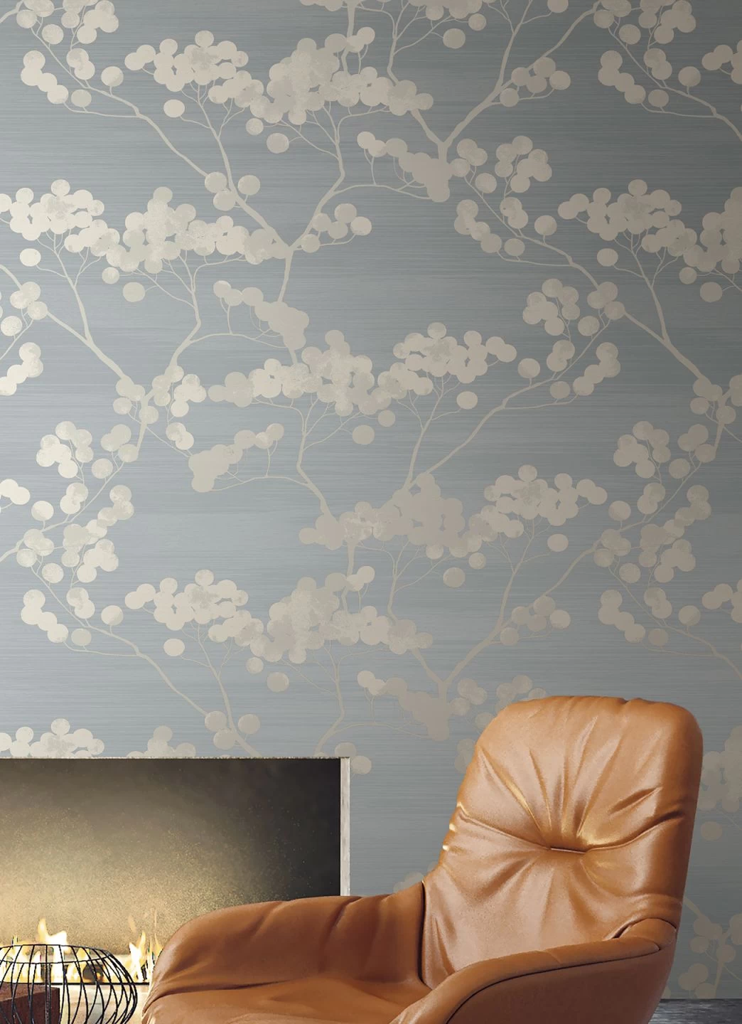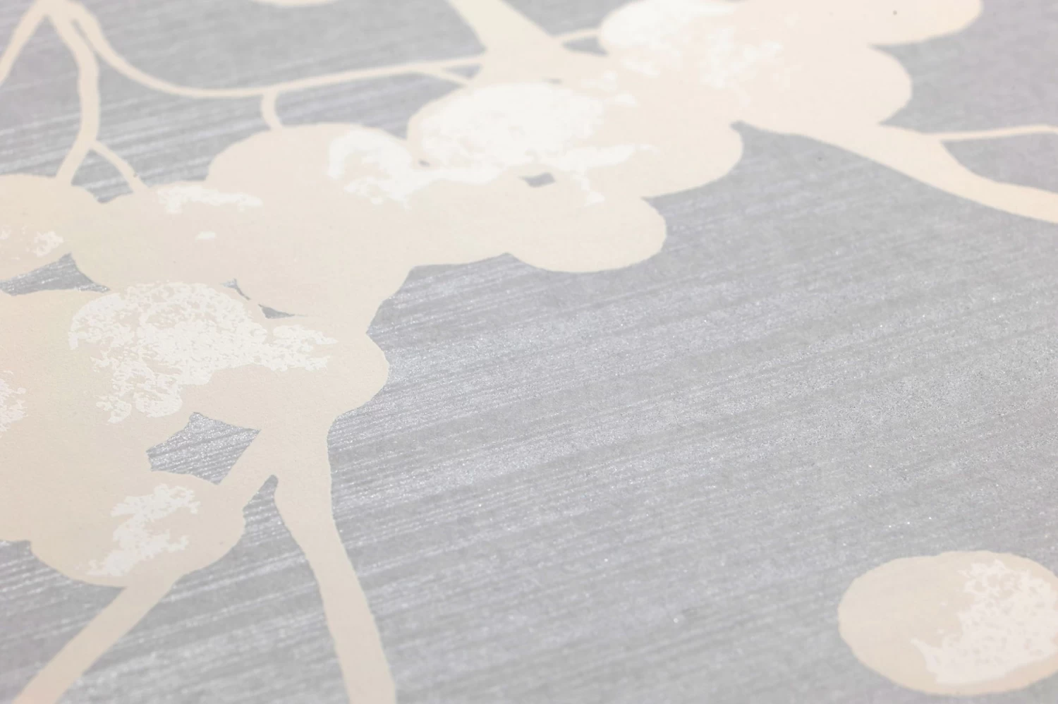 Feine Zweige mit irisierendem Glanz und im asiatischen Stil ergeben in ihrer besonderen Anordnung ein faszinierendes Musterspiel. Weite, Unendlichkeit und aufstrebende Freude verbreitet die glatte Papiertapete mit schimmerndem Untergrund. Gönnen Sie sich ein Stück von diesem floralen Tapetenglück.