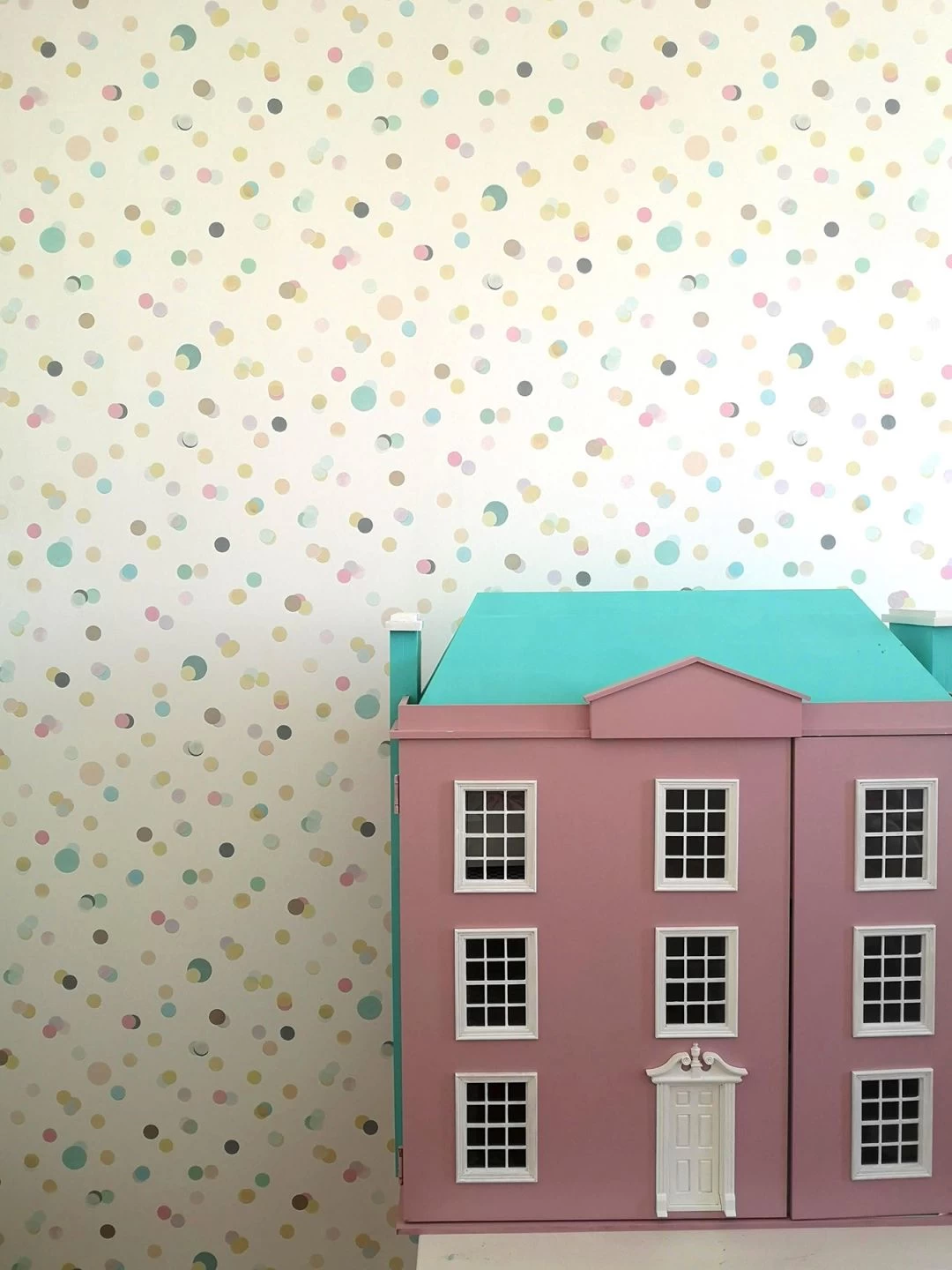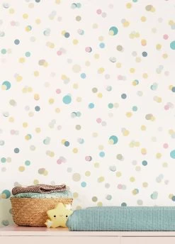 Die bunten Punkte in Hellgelb, Pastellgrün, Perlbeige, Türkisblau machen einfach nur Spaß und gute Laune. Das Kinderzimmer läuft zu Hochtouren auf und beflügelt die kreative Energie zum Lernen und Spielen. Dazu punktet die Kindertapete für Jungs und Mädchen mit waschbeständiger Oberfläche, die leicht zu reinigen ist.