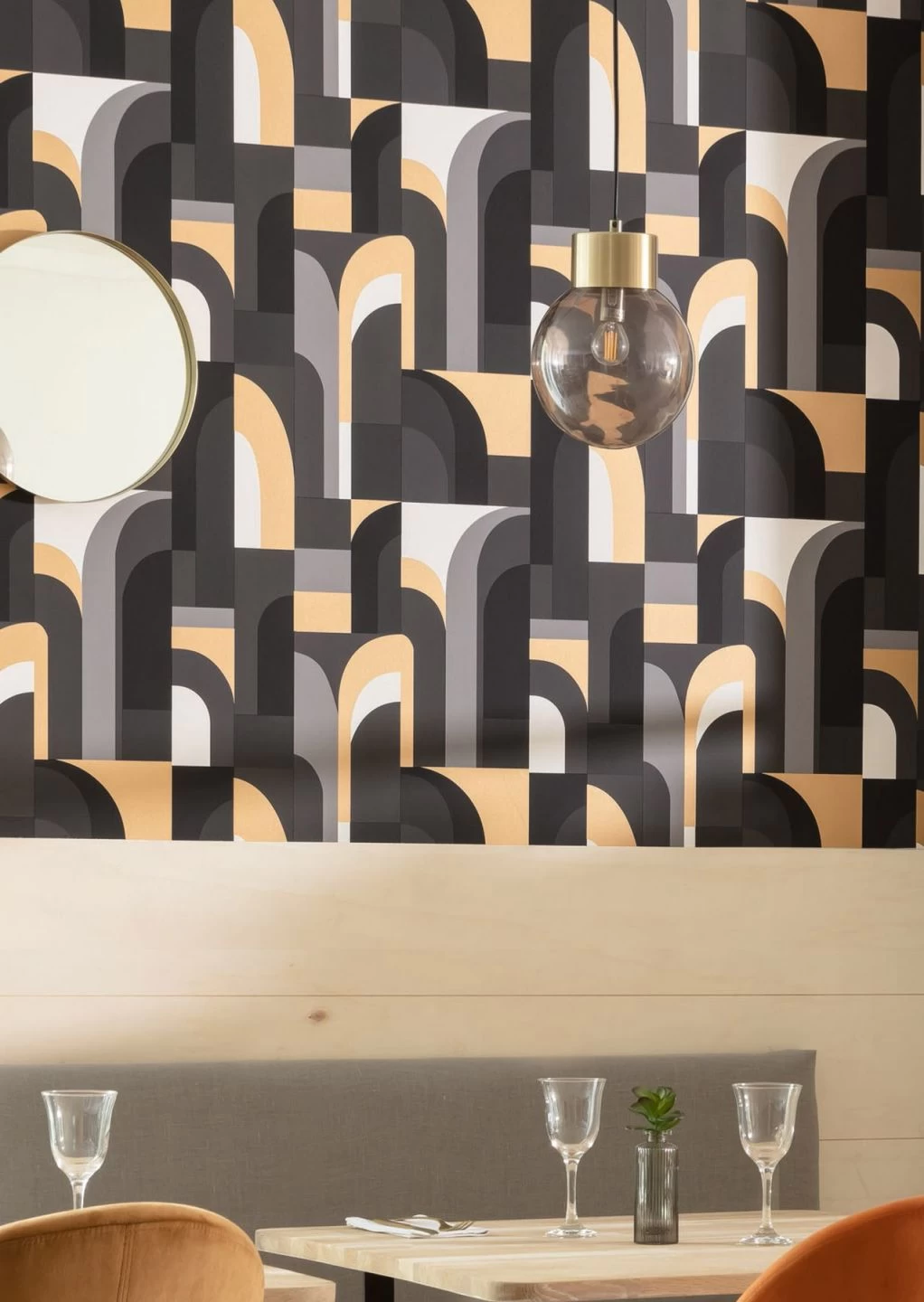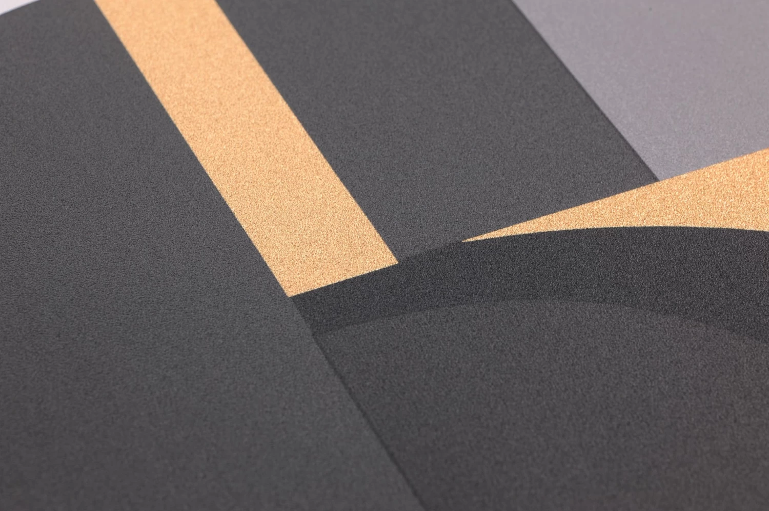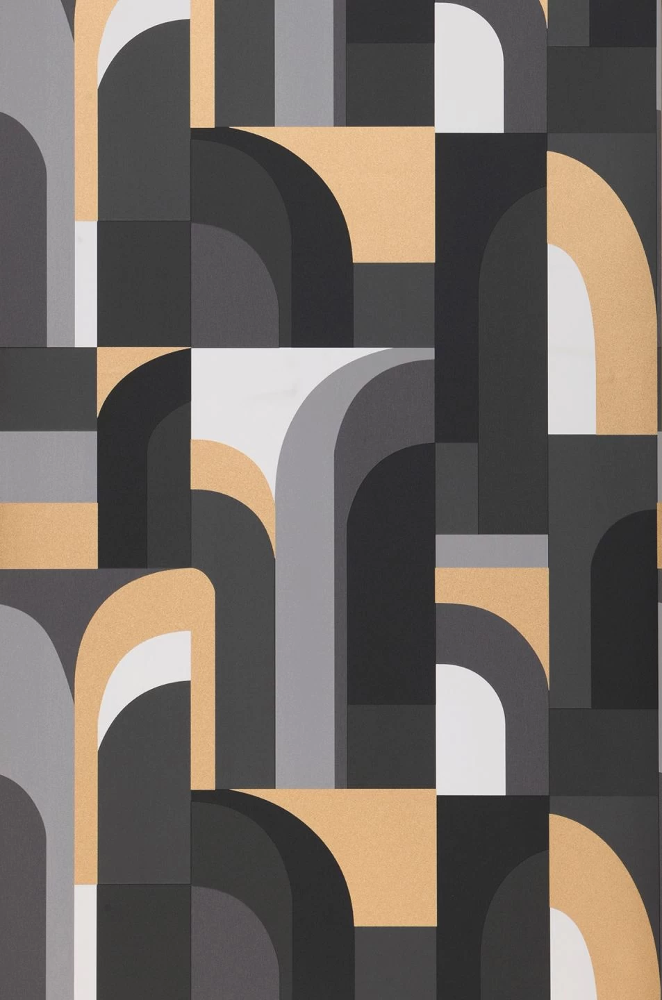 Verschiedene Grautöne, dazwischen Perlgold und Weiß – die zeitlose, kontrastreiche Farbgebung betont das Art-Deco-Muster aus flächigen Bögen und löst die große Ebene einer Wand auf in eine lebhafte Kulisse. Die neutralen Farben in Verbindung mit den goldenen Flächen lassen sich vielseitig kombinieren. Das scheuerbeständige Oberflächenmaterial aus Vinyl sorgt dafür, dass die Vliestapete auch im Badezimmer perfekt verarbeitet werden kann.