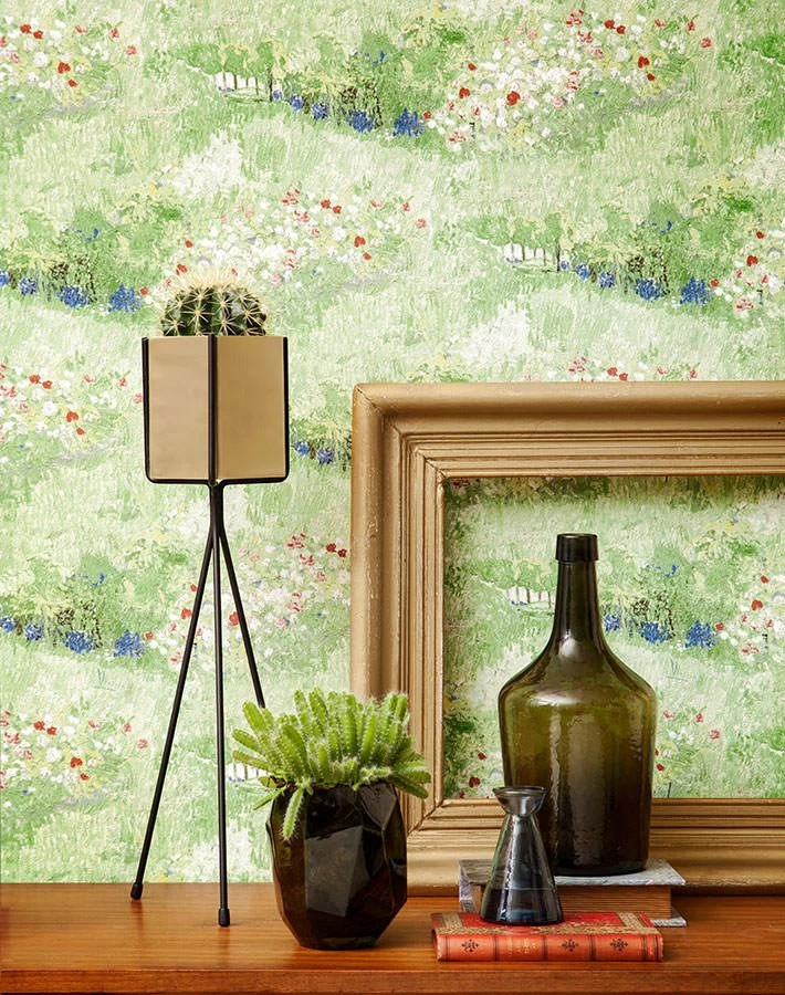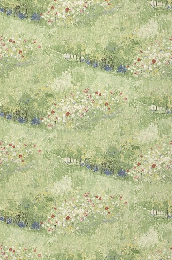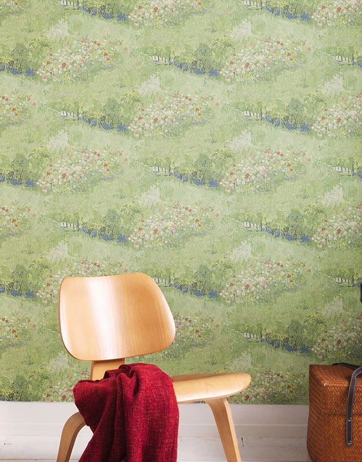 Hochgewachsene Gräser, Blumen in Weinrot, Saphirblau und hellem Blassgrün, im Hintergrund die Bäume einer Allee – die Vliestapete ist von Van Goghs Gemälde „Daubignys Garten“ inspiriert. Die ausdrucksvollen Pinselstriche des Künstlers finden sich in der Oberfläche der Vliestapete als fühlbare Struktur wie die eines Ölgemäldes wieder. Mit dem sommerlichen Garten können Sie dank seiner hoch waschbeständigen Vinyloberfläche auch Ihr Bad verschönern.