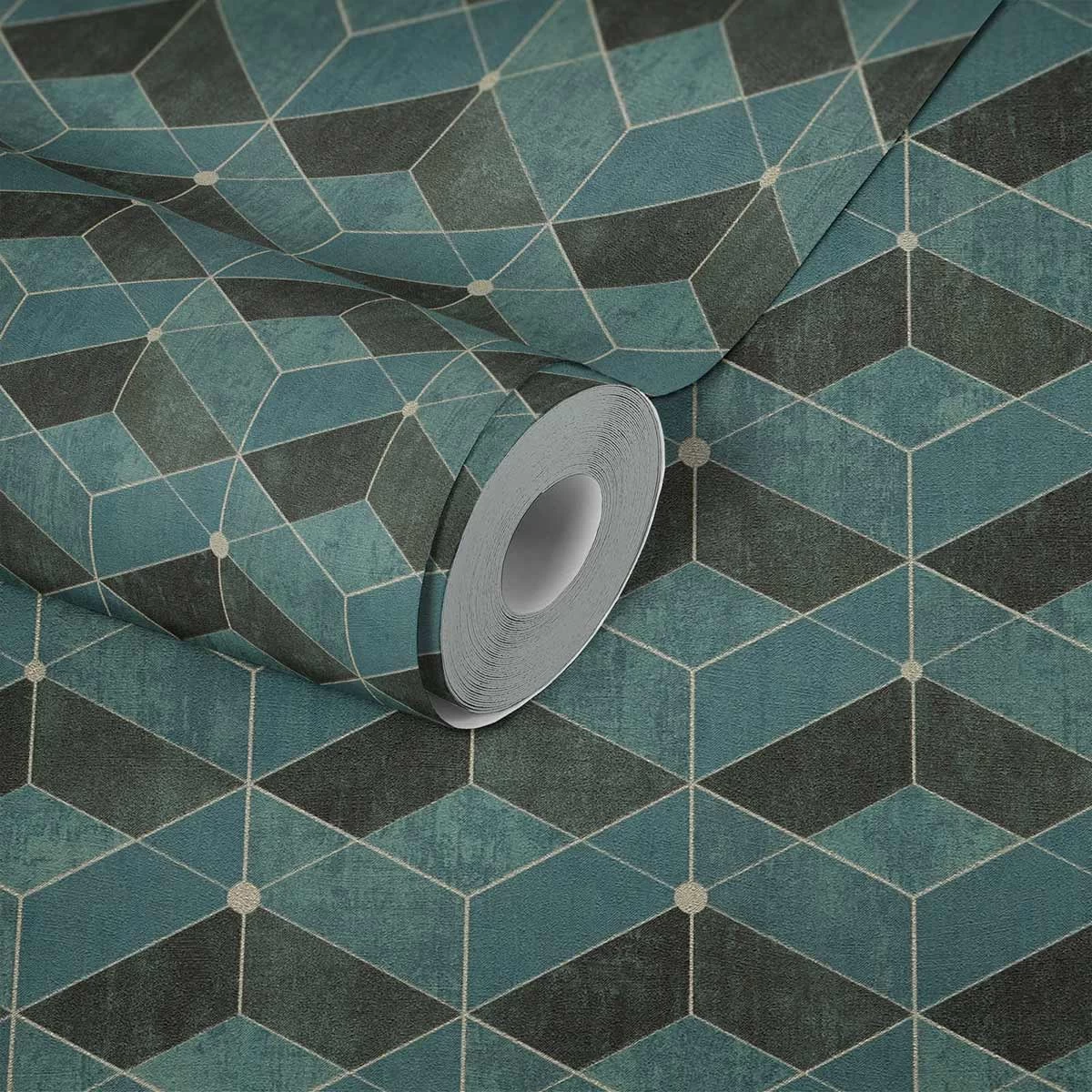 Edle Wanddekoration in jedem deiner Räume – Die Tapeten aus der Kollektion Titanium von livingwalls versprechen ein luxuriöses Gesamtbild und bestehen aus hochqualitativen Materialien. Mit der Vliestapete 38202-3 mit geometrischen Formen und 3D-Effekt in grün, schwarz, gold und mit Glanz-Akzenten erwirbst du eine exklusive Wandverzierung, die deine Gäste zum Staunen bringen wird.