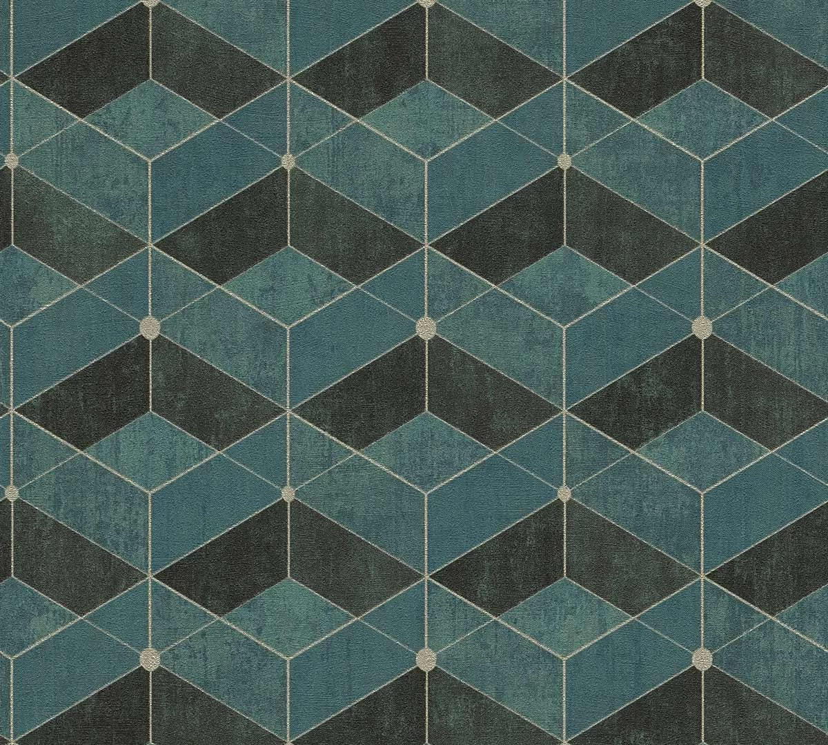 Tapete Vlies 3D-Effekt Grafisch grün schwarz gold Glanz-Akzente livingwalls Titanium 3 38202-3 | 382023