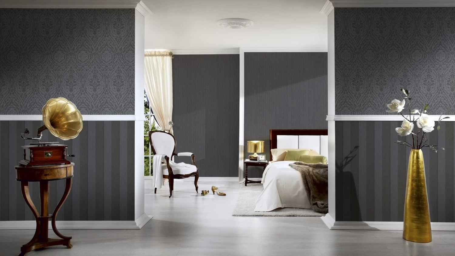 Wenn ein unvergleichliches Wanddekor mit Glanzeffekt zum zeitlosen Modeaccessoire für die Wohnung wird, handelt es sich um die Vliestapete 96195-7 von Architects Paper. Das leicht glänzende Barock-Muster in schwarz grau verschöneret Wohnräume auf eine elegante Art und Weise. Durch das Vliesmaterial ist die deutsche Markentapete waschbeständig, restlos trocken abziehbar und gut lichtbeständig.
