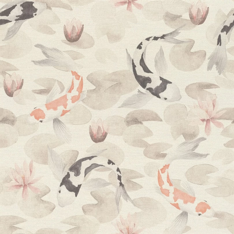 Vliestapete Rasch Koi Fisch Seerosen creme beige rosa Kimono 409420