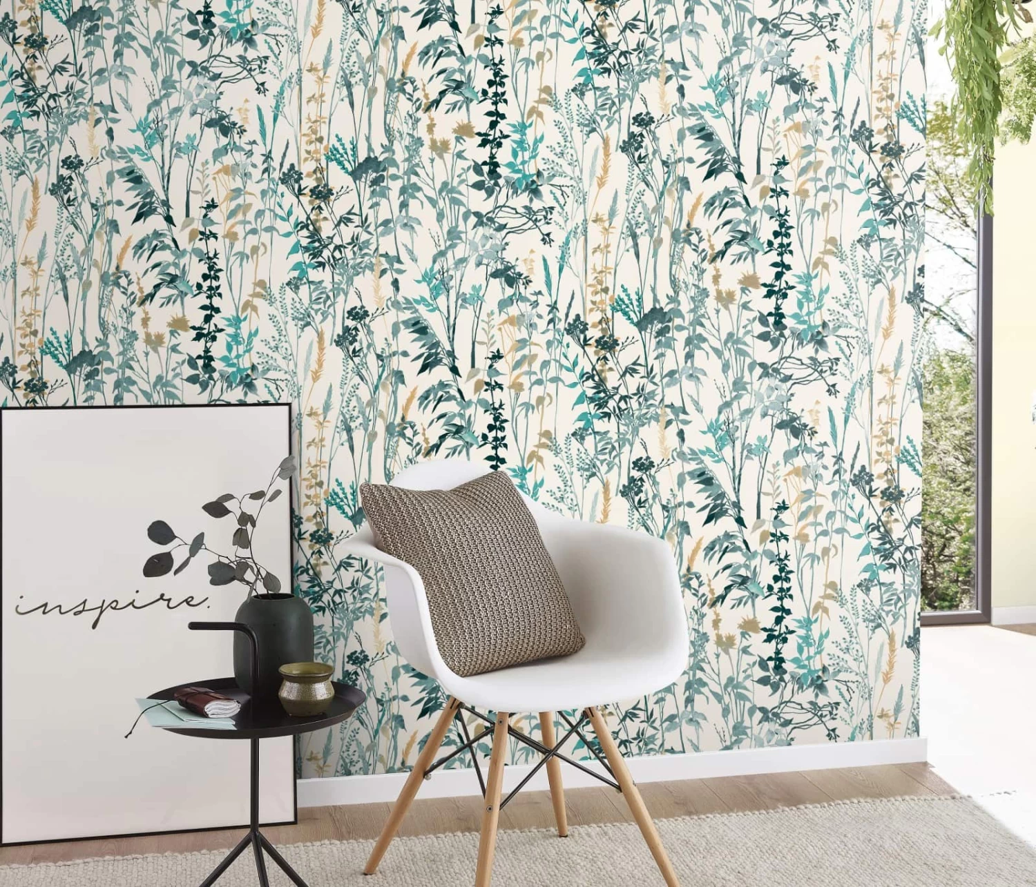 Ob Tapeten mit zarten Gräsern, üppigen Blattmotiven oder auch schlichte Uni-Tapeten, all das finden Sie in der Kollektion Casual Chic von Erismann. Inspiriert von den Formen und Farben der Natur finden Sie hier Vliestapeten von lässiger Schönheit in eleganter Optik in zarten und kräftigen Farben, sowie mit Metallic-Effekten. Die Vliestapete 10258-18 zeigt ein von einer Wildblumenwiese inspiriertes Muster mit Zweigen und Gräsern in Weiß-, Grau- und Blautönen. Entdecken Sie auch die weiteren Tapeten der Casual Chic Kollektion von Erismann in unserem Shop.